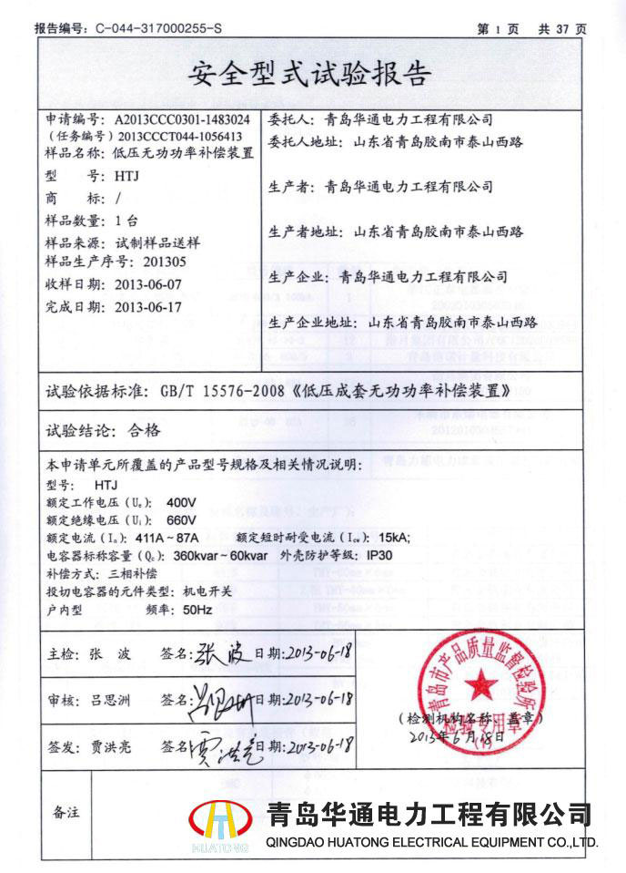 JP低壓綜合配電柜檢驗報告