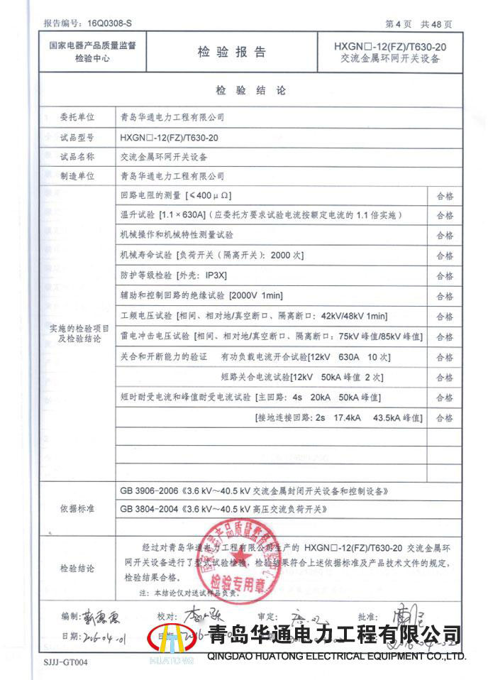 KYN28A-12 high voltage switchgear type test r