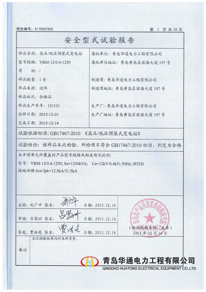 MNS low - voltage switchgear type test report